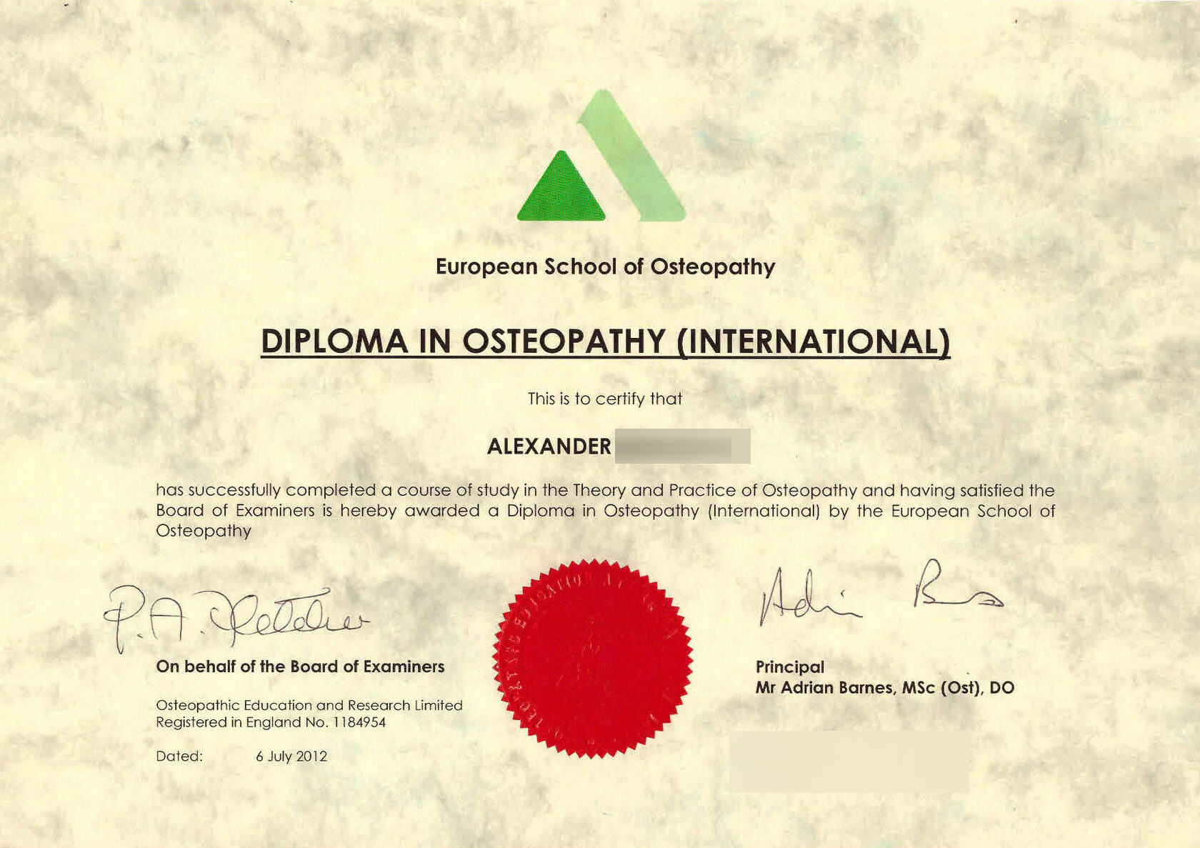 Наши семинары также готовят к получению диплома остеопата по программе Европейской школы остеопатии